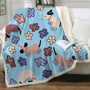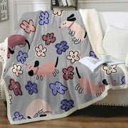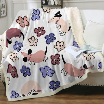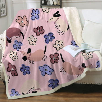 Flowery Cartoon Dachshunds Soft Warm Fleece Blanket - 4 Colors
