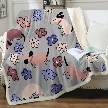 Flowery Cartoon Dachshunds Soft Warm Fleece Blanket - 4 Colors-Blanket-Blankets, Dachshund, Home Decor-8
