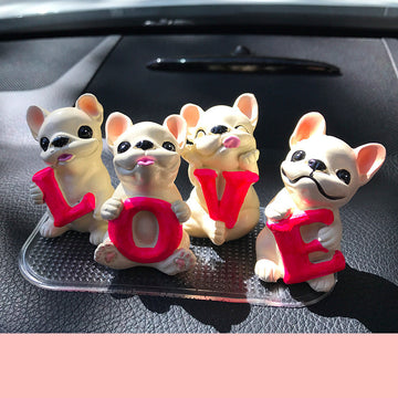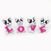 Includes: 4 French Bulldog figurines with one letter each, spelling LOVE. Wooden Base not Included.