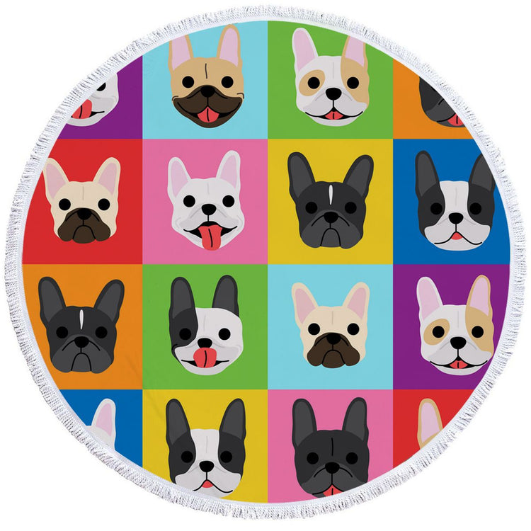 Unleash Your Frenchie Love at the Pool or Beach with Our French Bulldog Love Round Beach Towels