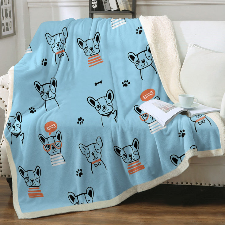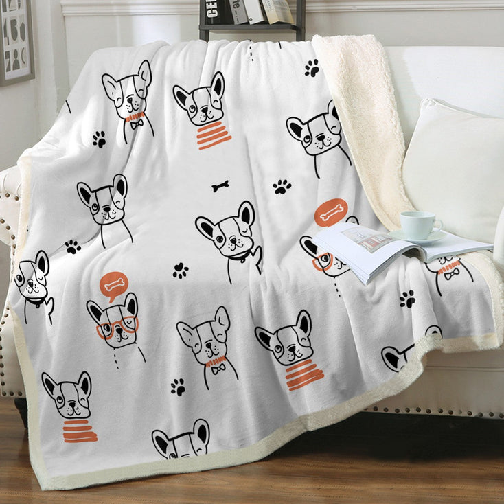 Hand Drawn Cartoon Boston Terriers Soft Warm Fleece Blanket - 4 Colors