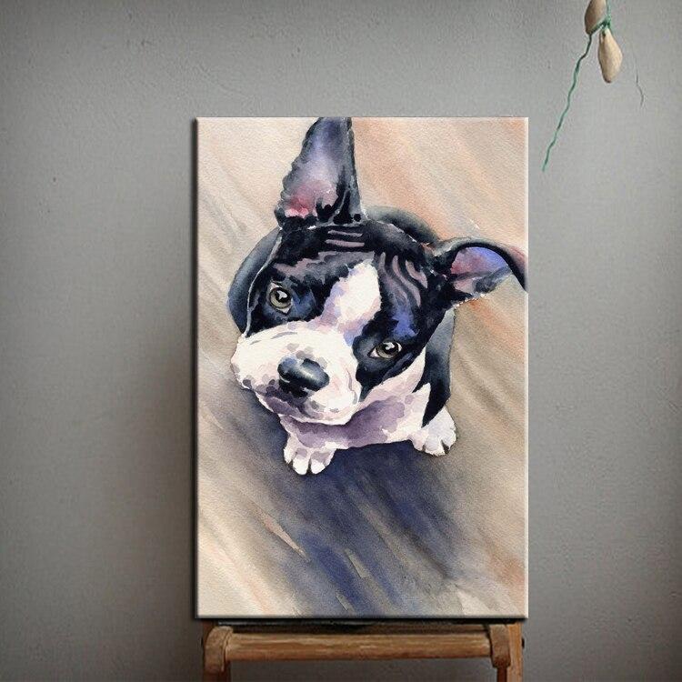 Hand Painted Curious Boston Terrier Canvas Art Oil Painting