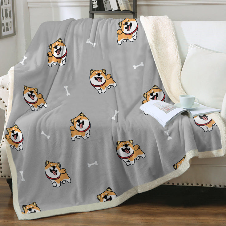 Happy Happy Shiba Love Soft Warm Fleece Blanket - 3 Colors