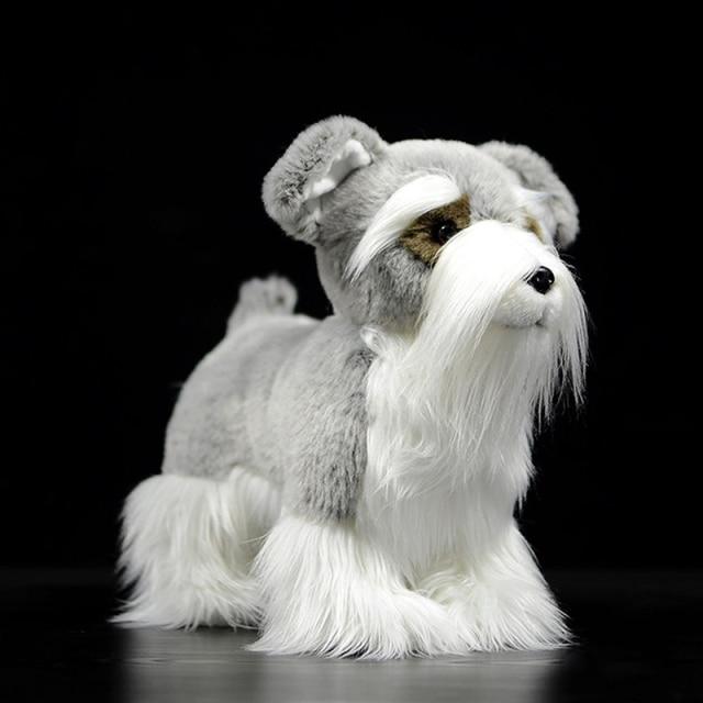 A beautiful lifelike standing silver Schnauzer soft toy!