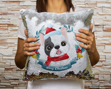Delight in the festive charm of our Merry Pied Black and White Frenchie Christmas Sequinned Pillowcases.
