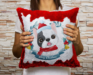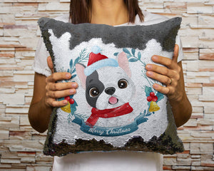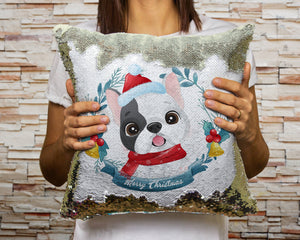 Merry Pied Black and White Frenchie Christmas Sequinned Pillowcases - 10 Colors