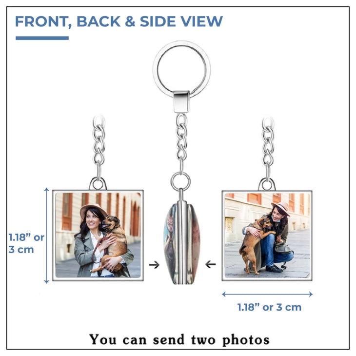 You can personalize these keychains with 2 different photos or the same photo on both sides, giving you the perfect way to keep your beloved pet close to you at all times!
