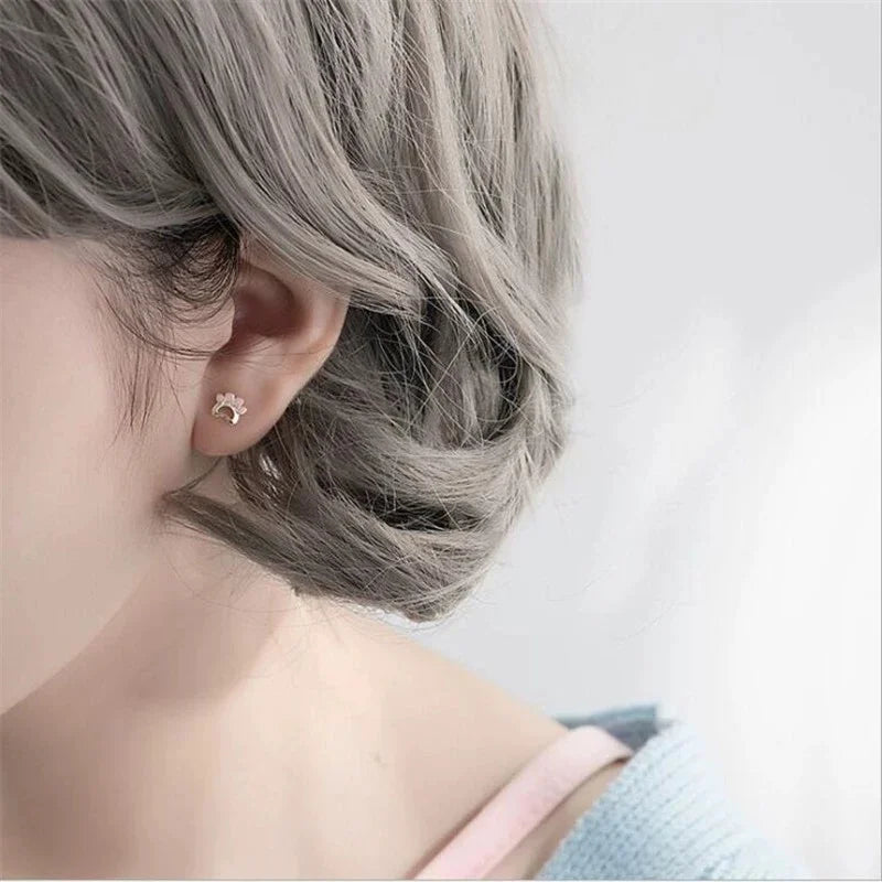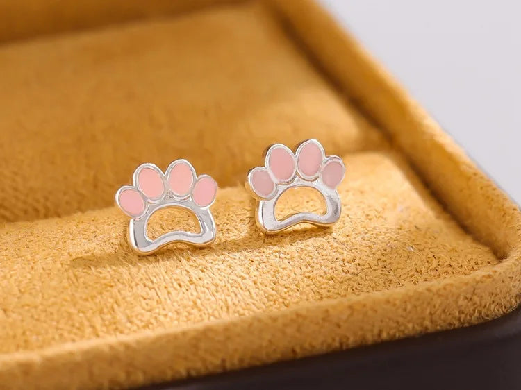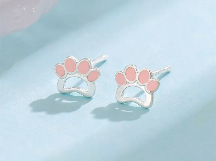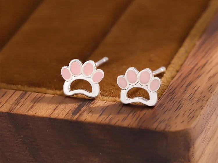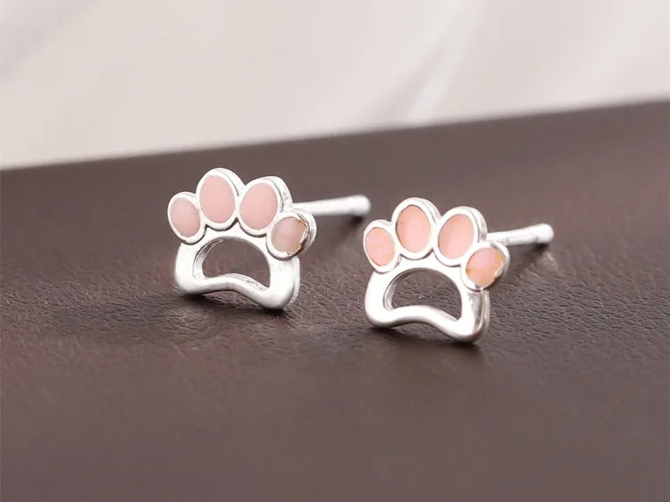 Pink Dog Paw Silver Earrings