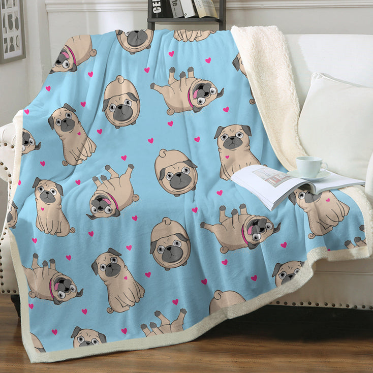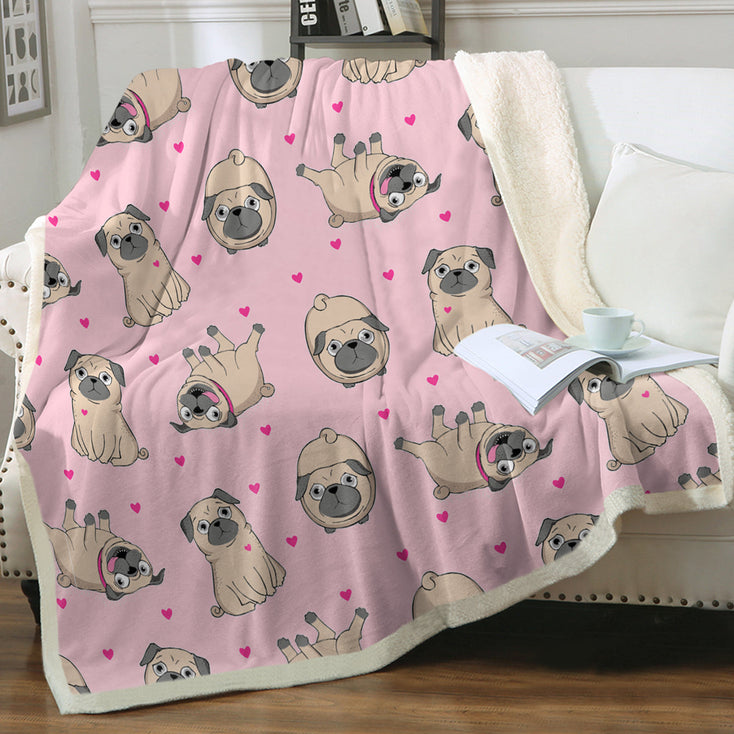 Pink Hearts Pug Love Soft Warm Fleece Blanket - 4 Colors