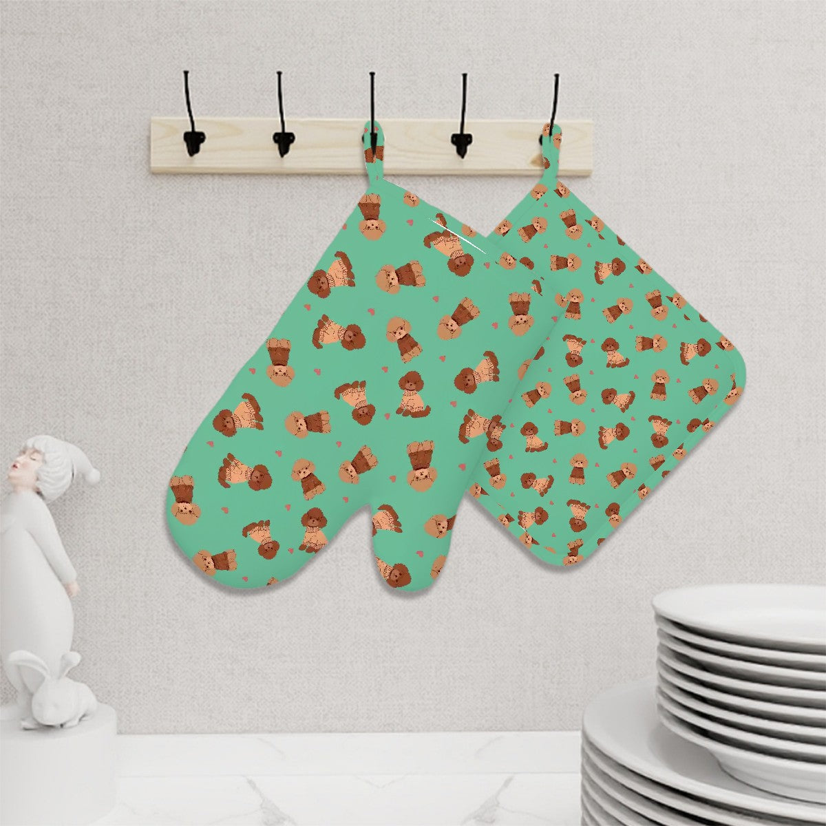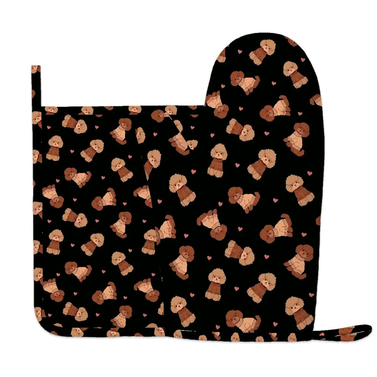 Playful Doodle Love Oven Mitts and Pot Holder Set