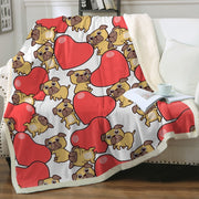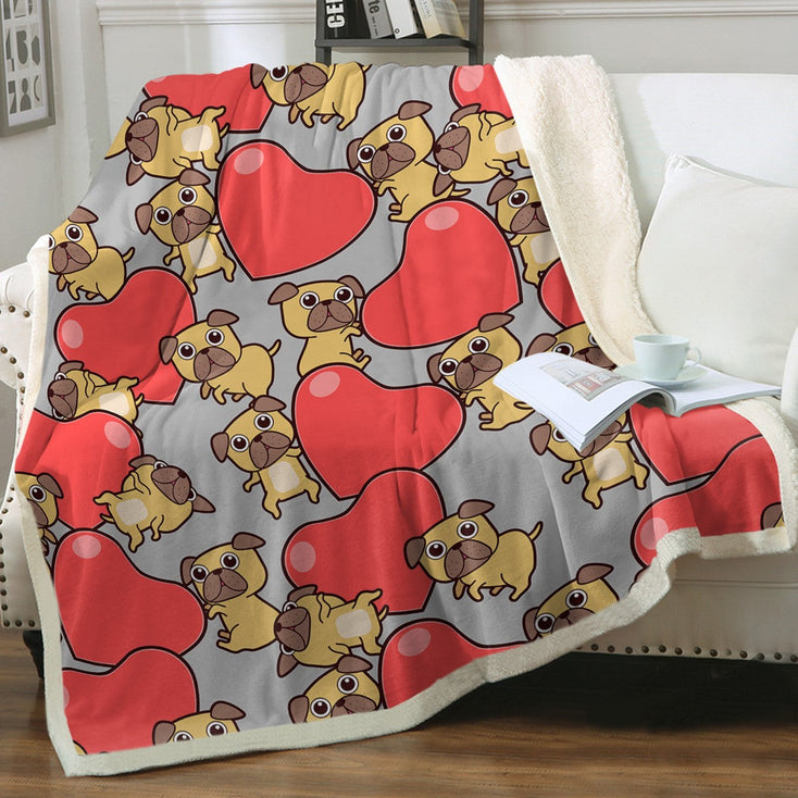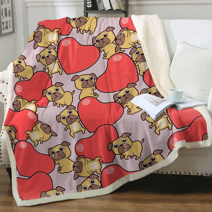 Pugs with Big Red Hearts Soft Warm Fleece Blanket - 5 Colors