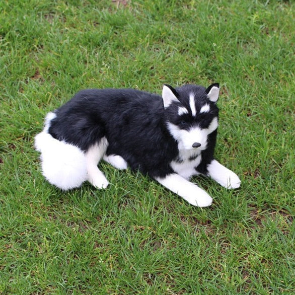Realistic Black Husky Stuffed Animal with Faux Fur