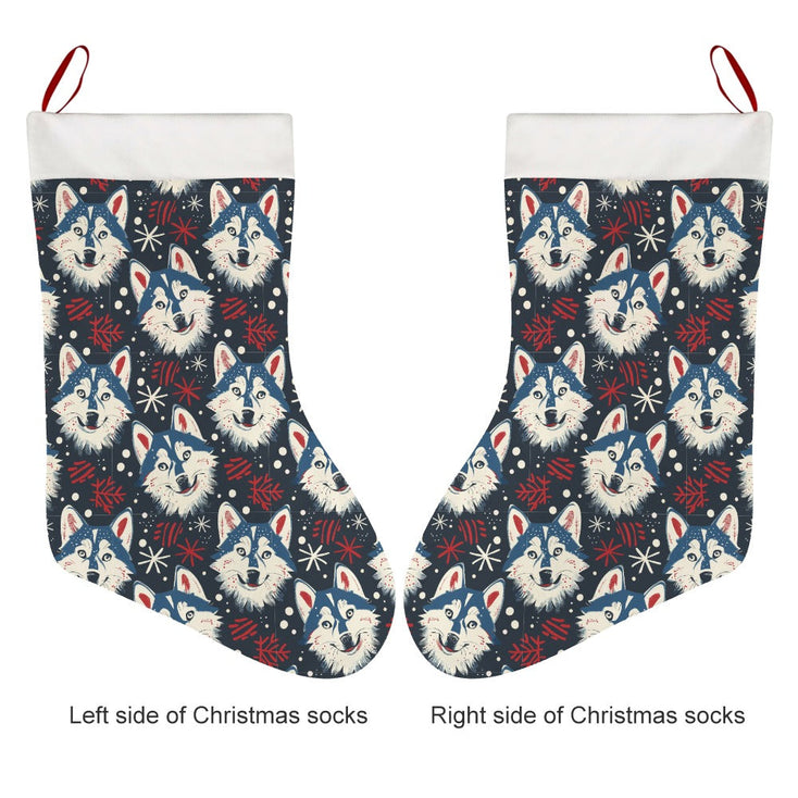 Celebrate the festive season with the Snowfall Splendor Husky Christmas Stocking, a perfect gift for Husky lovers.
