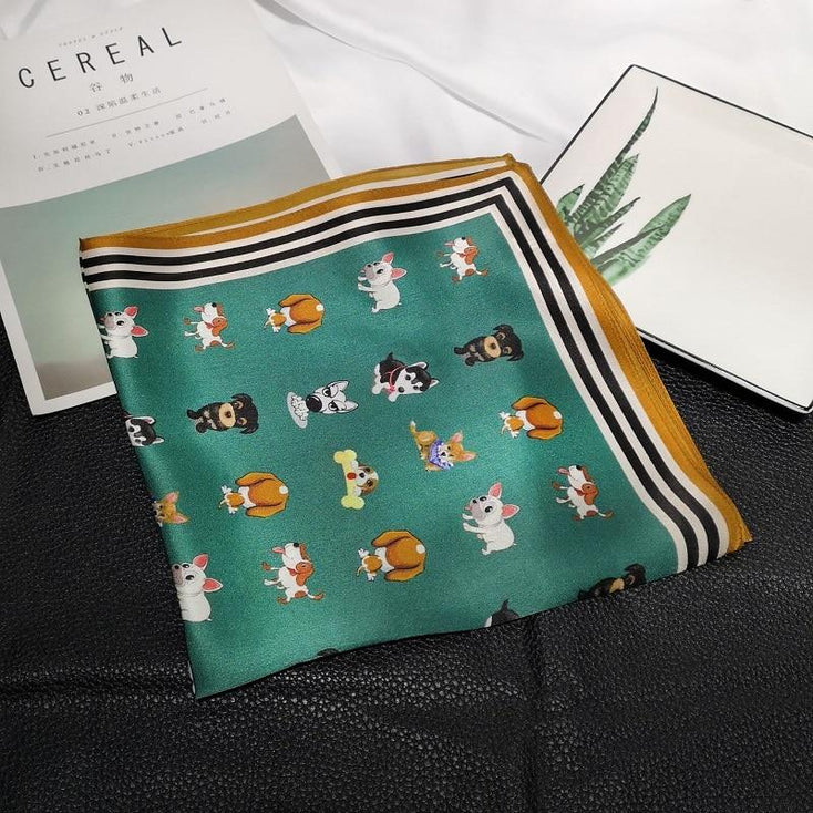 Featuring a cutest French Bulldog, Beagle, Husky & Schnauzer on a green or pink background with a bold border. Style this cutest scarf for dog lovers around your neck or shoulders, use it to tie your hair, wrap it around your handbag, use as a makeshift face mask or anything you need!