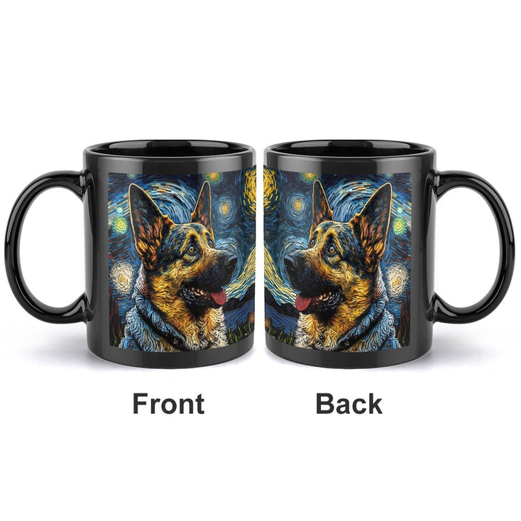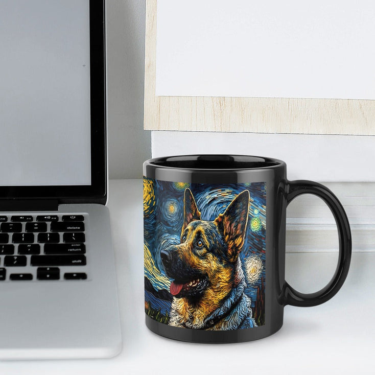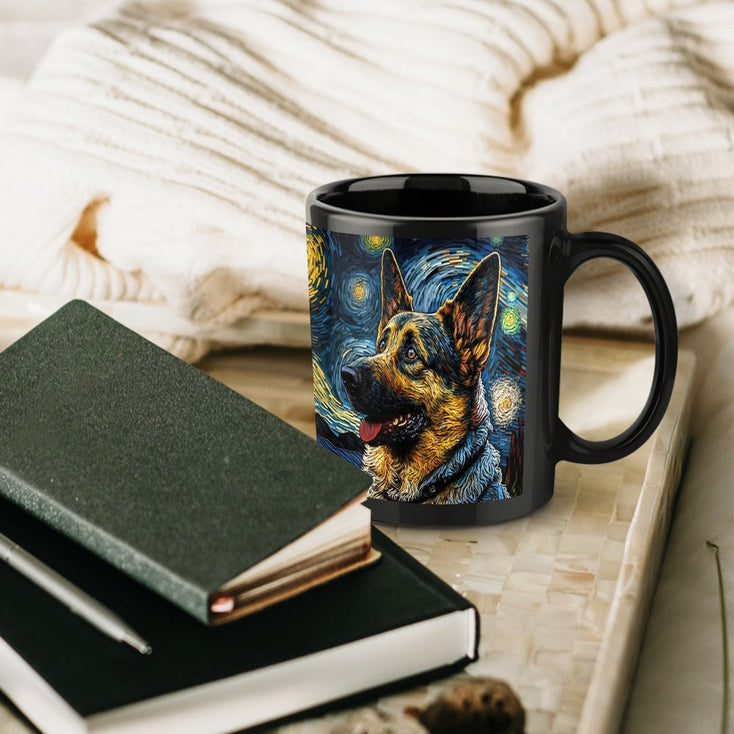 Immerse yourself in the artful embrace of our Starry Night Serenade German Shepherd Coffee Mug.