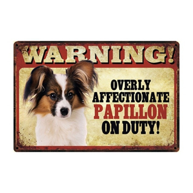 Show your love for your furry friend with our Warning Overly Affectionate Papillon on Duty Tin Poster! This charming piece is perfect for any Papillon lover who wants to celebrate the joy and affection their pet brings into their life.