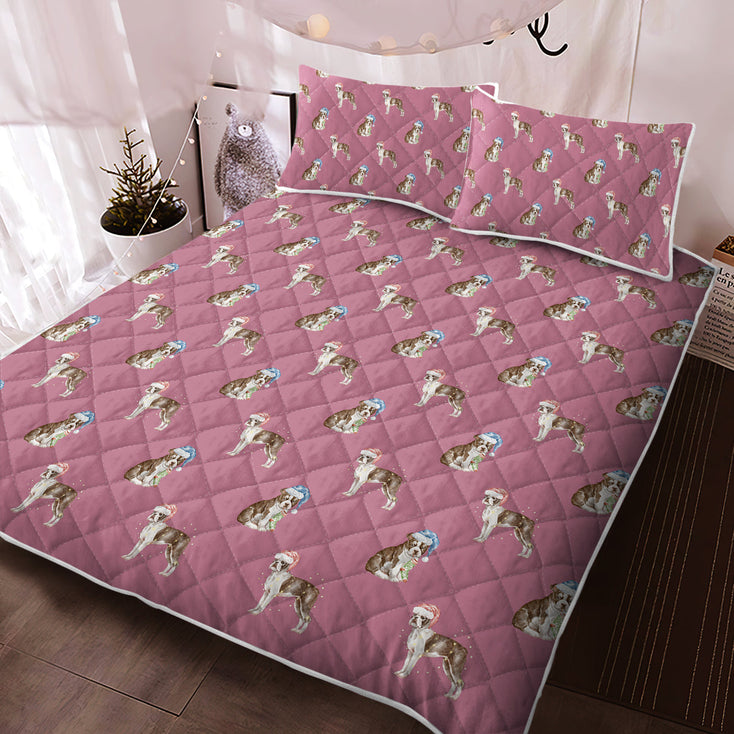 Transform your bedroom into a festive haven with our Watercolor Chocolate Red Boston Terriers Christmas Quilted Bedding Set.