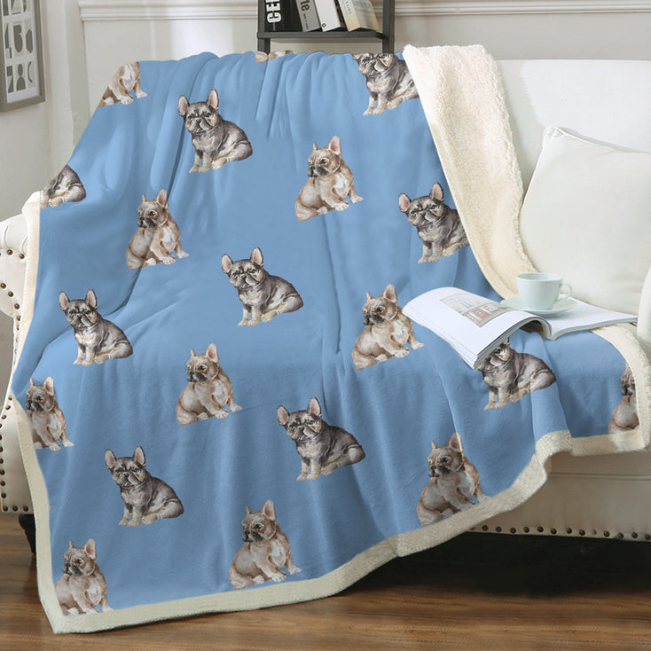 Watercolor Fawn and Tricolour Frenchies Fleece Blanket - 8 Colors-Blanket-Bedding, Blankets, French Bulldog, Home Decor-Sky Blue-Single-19