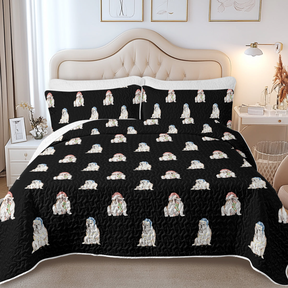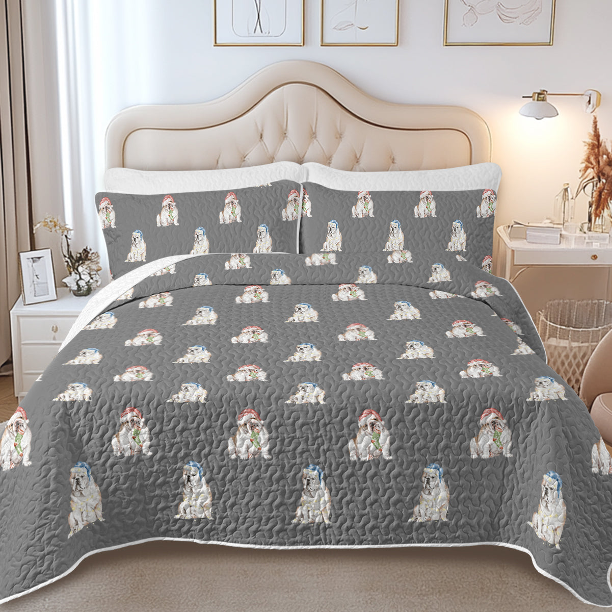Watercolor Fawn White English Bulldogs Christmas Quilted Bedding Set