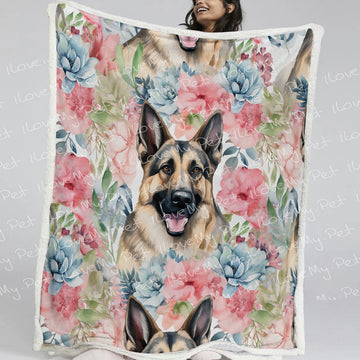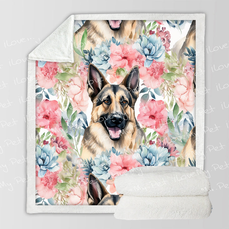 Watercolor Flower Garden German Shepherd Fleece Blanket