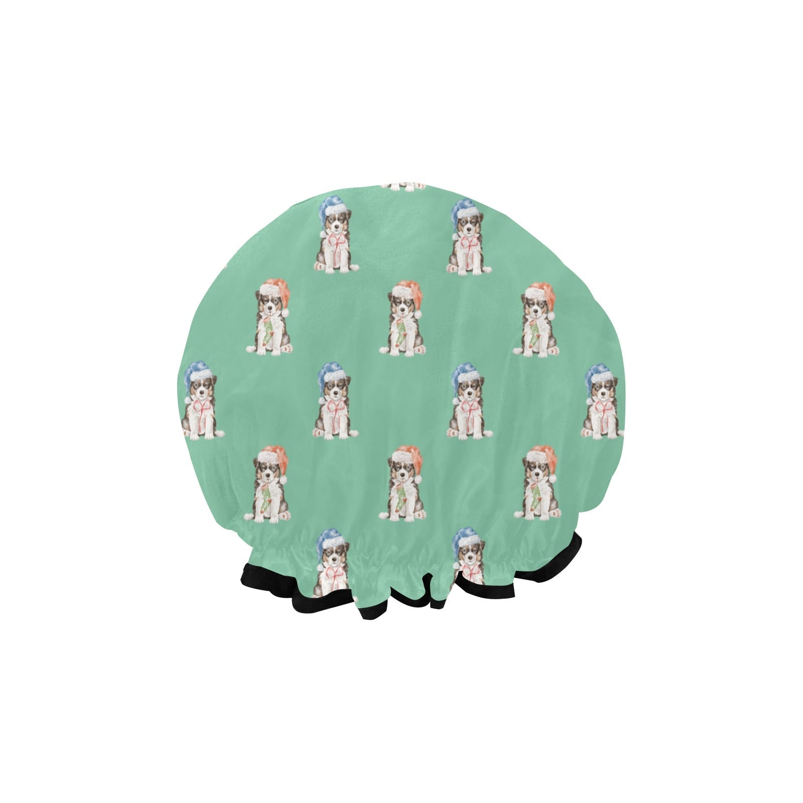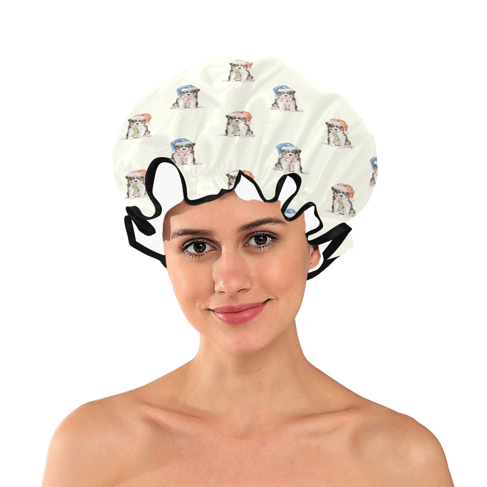 Watercolor Tricolor Border Collie Puppies Christmas Reusable Shower Caps-Accessories-Accessories, Border Collie, Christmas, Dog Mom Gifts-1
