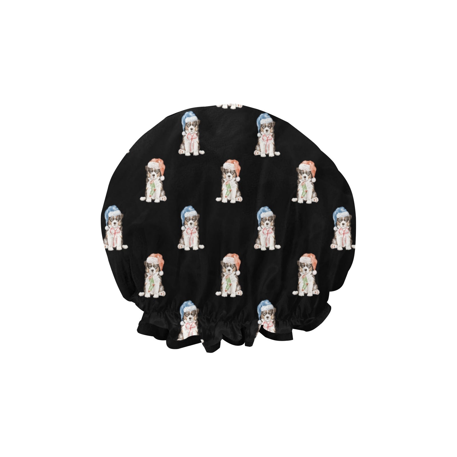 Watercolor Tricolor Border Collie Puppies Christmas Reusable Shower Caps-Accessories-Accessories, Border Collie, Christmas, Dog Mom Gifts-Midnight Black-ONE SIZE-6