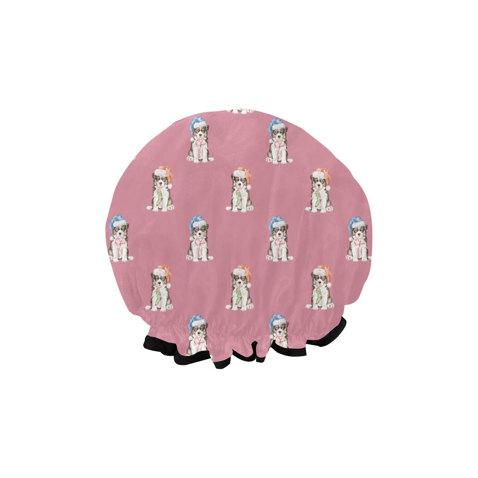 Watercolor Tricolor Border Collie Puppies Christmas Reusable Shower Caps-Accessories-Accessories, Border Collie, Christmas, Dog Mom Gifts-Dusty Pink-ONE SIZE-10