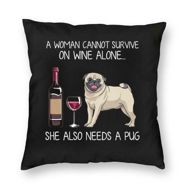 If you're a Pug mom who also loves wine - then this most adorable throw pillow is for you!