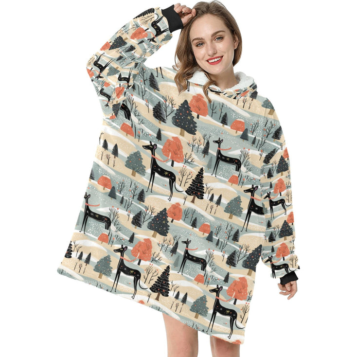 Wintry Wonderland Great Dane’s Christmas Blanket Hoodie