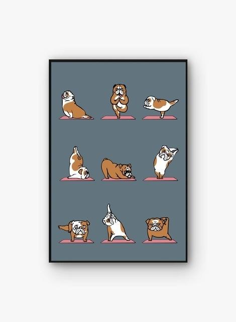 Printed on high-quality canvas with bright colors, and featuring the cutest English Bulldogs doing Yoga design.